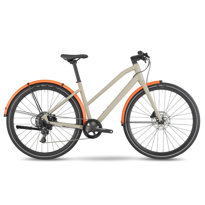 Fact Sheet of BMC 257 AL TWO ST – Women City Bike – Powder Sand Product Name: BMC 257 AL TWO ST – Women City Bike – Powder Sand Manufacturer: BMC Bikes Item Code: BMC577755 activity: Cycling gender: women material: Aluminium usage bikesport: City hubs: Formula CL-712, 12x100mm / Formula RXC-142S, 12x142mm rims: SR500 chain: SRAM Apex cassette: SRAM PG 1130 shifter: SRAM GX rear derailleur: SRAM Apex 1, 11-speed bottom bracket: BSA chainring ratio: 40 crankset: SRAM Apex 1 brakes: Magura MT4, 180/160mm seat post model: Lightskin, Integrated Lights saddle: Selle Royal Vivo Women's handle bar: Lightskin, Integrated Lights stem: BMC MSM01 fork: 257 Premium Aluminium frame: 257 Premium Aluminium groupset: SRAM gear ratio: 11-42 number of gears – front: 1 shifting system: 11-speed shifting actuation: Mechanical bike extras: with Lighting System, with Fender, with Carrier brake type: Disc Brake wheel size: 28" (622mm) bike special accessories: Rear Rack, Fenders, Kickstand bike lights: Integrated LED Lights seatpost: Seatpost rigid ASTM: Category 2 tires: Pirelli Angel GT, 37mm brake actuation: Hydraulic Model year: 2023 Color: Orange, Beige fork construction: Rigid Fork cable routing: internal Manufacturer page: http://www.bmc-switzerland.com