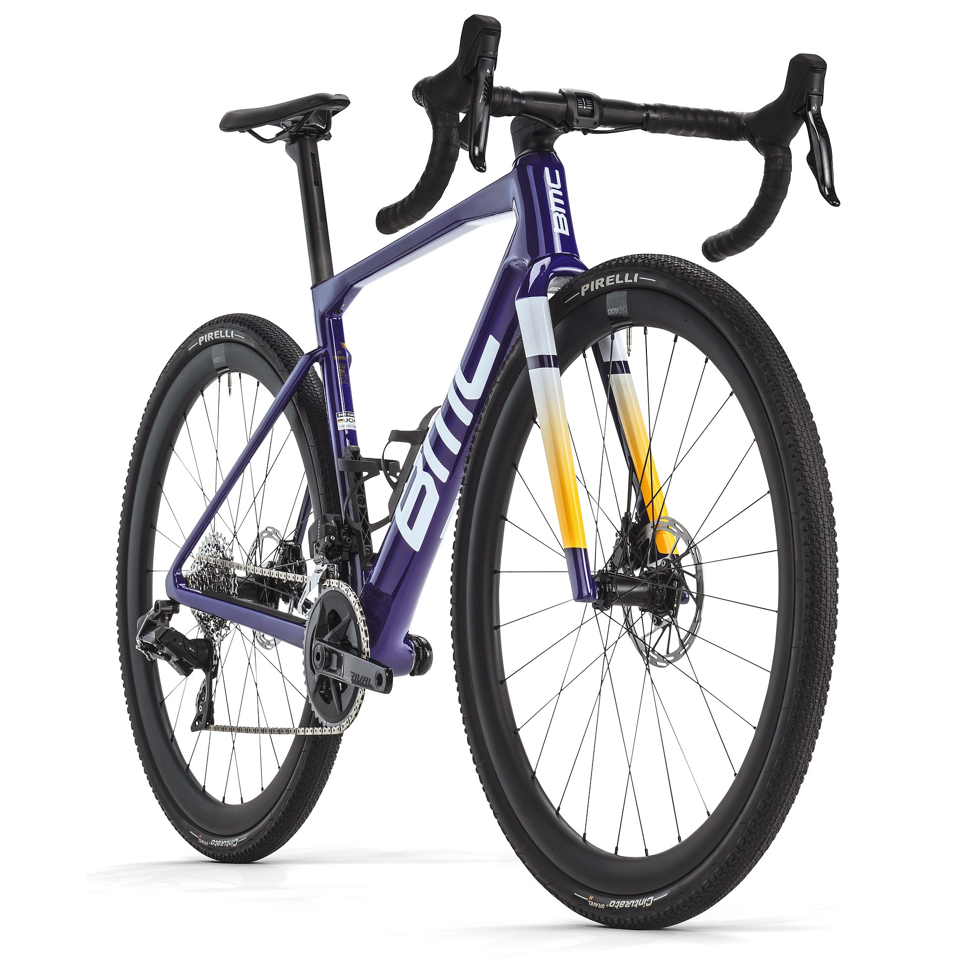 Fact Sheet of BMC KAIUS 01 THREE – Carbon Gravel Bike – 2024 – purple / white / orange Product Name: BMC KAIUS 01 THREE – Carbon Gravel Bike – 2024 – purple / white / orange Manufacturer: BMC Bikes Item Code: BMC642929 activity: Cycling gender: men material: Carbon usage bikesport: Allroad / Gravel chain: SRAM Rival cassette: SRAM Rival XG-1250 shifter: SRAM Rival eTap AXS rear derailleur: SRAM Rival eTap AXS Wide front derailleur: SRAM Rival eTap AXS bottom bracket: PF86 chainring ratio: 43-30 crankset: SRAM Rival, DUB Wide brakes: SRAM Rival, 160/160mm wheels: CRD-400 Carbon seat post model: Kaius 01 Premium Carbon D-Shaped saddle: Fizik Vento Argo R5 handle bar: BMC RAB 02, Ergo Top Shape, Compact Bend stem: BMC ICS2 fork: Kaius 01 Premium Carbon, ICS Technology frame: Kaius 01 Premium Carbon, Aerocore Design groupset: SRAM AXS (electronic) gear ratio: 10-36 number of gears – front: 2 shifting system: 12-speed shifting actuation: Electronic brake type: Disc Brake wheel size: 28" (622mm) bike special accessories: Aerocore Bottle Cages seatpost: Seatpost rigid ASTM: Category 2 tires: Pirelli Cinturato Gravel H, 40mm max tire width: 44mm weight limit: 120kg brake actuation: Hydraulic Model year: 2024 Color: Purple fork construction: Rigid Fork cable routing: fully integrated Manufacturer page: http://www.bmc-switzerland.com