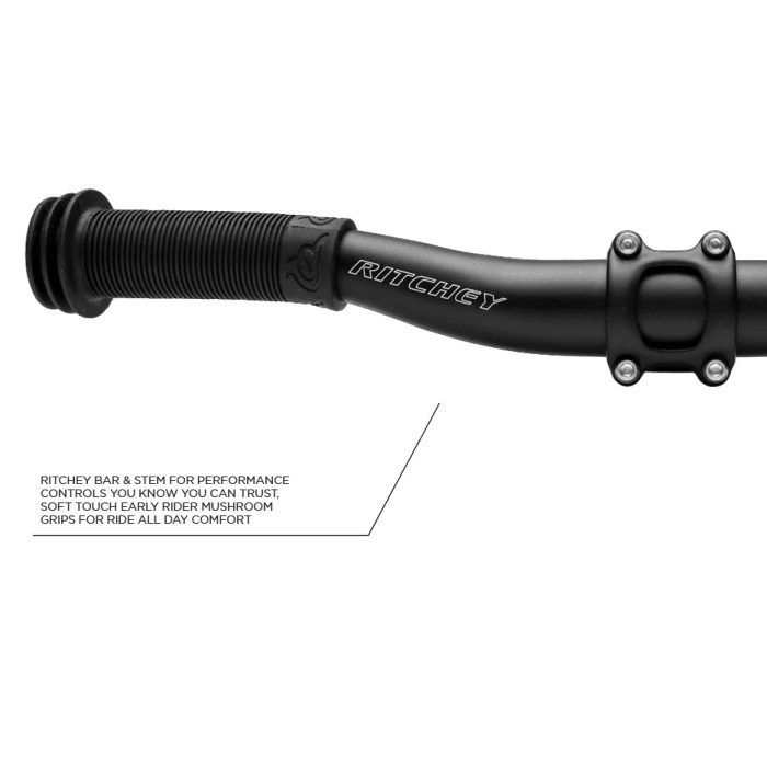 - Handlebars and stem by “Ritchey” provide control and a wheel that steers well