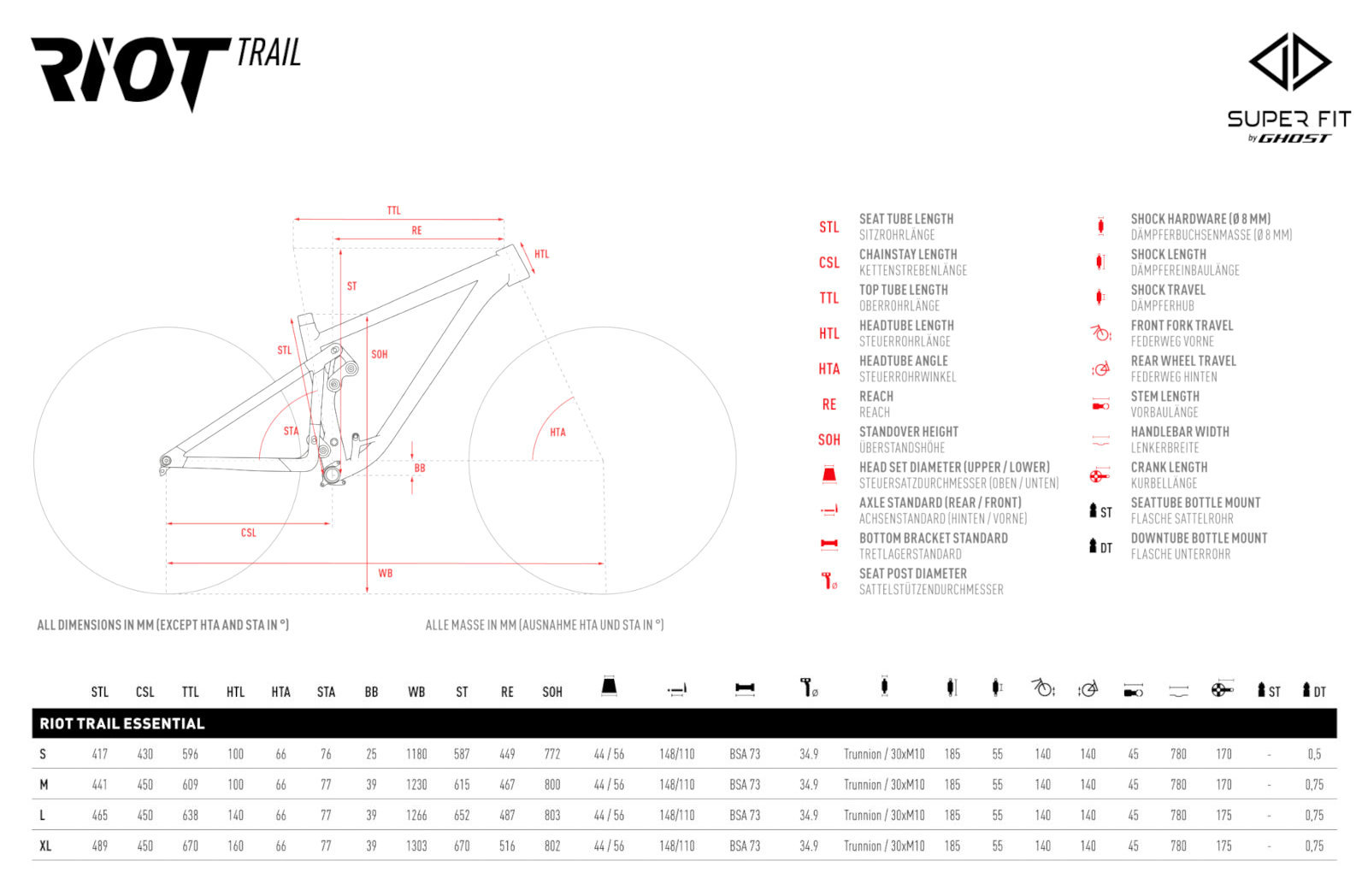 GHOST heralds a new era in bike development and says goodbye to traditional construction methods. From now on, the bikes will be based on a specially developed algorithm for the holistic calculation of the so-called “from-rider-to-bike geometries”. This algorithm is called SuperFit. Following the SuperFit concept, size S comes with 27.5″ wheels, while sizes M-XL are equipped with 29″ wheels.