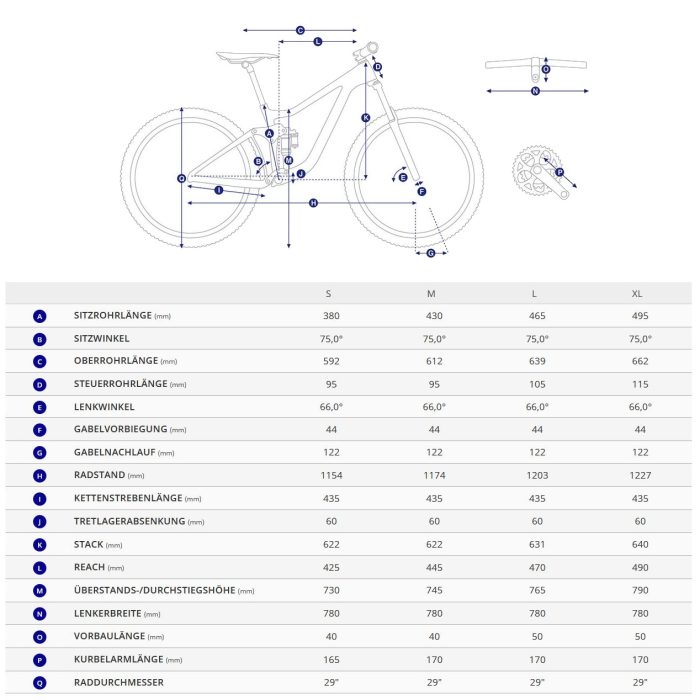 - Trail-tuned design – Balanced geometry with a 75-degree seat tube angle puts the rider in a powerful pedaling position on climbs, while the flatter 66-degree steer angle increases confidence and control on technical descents.