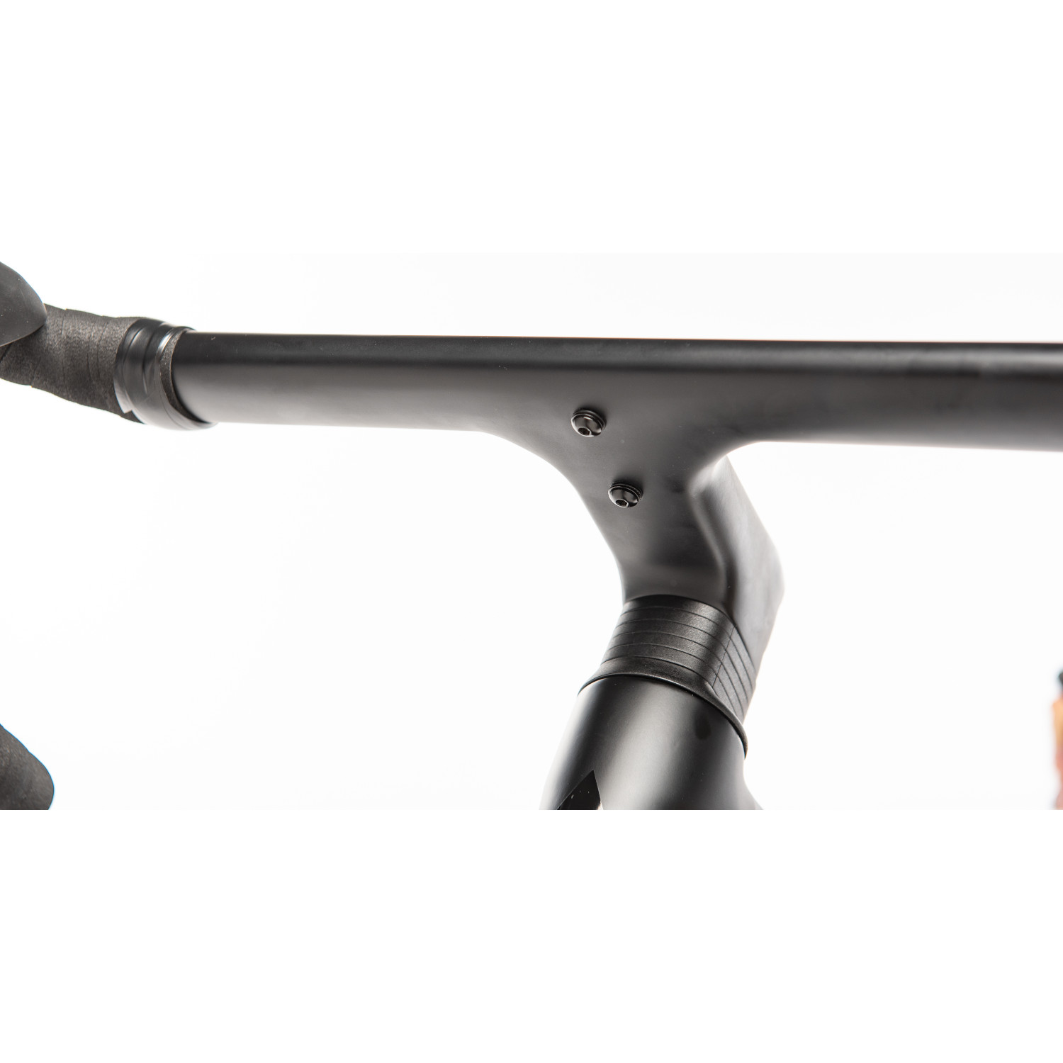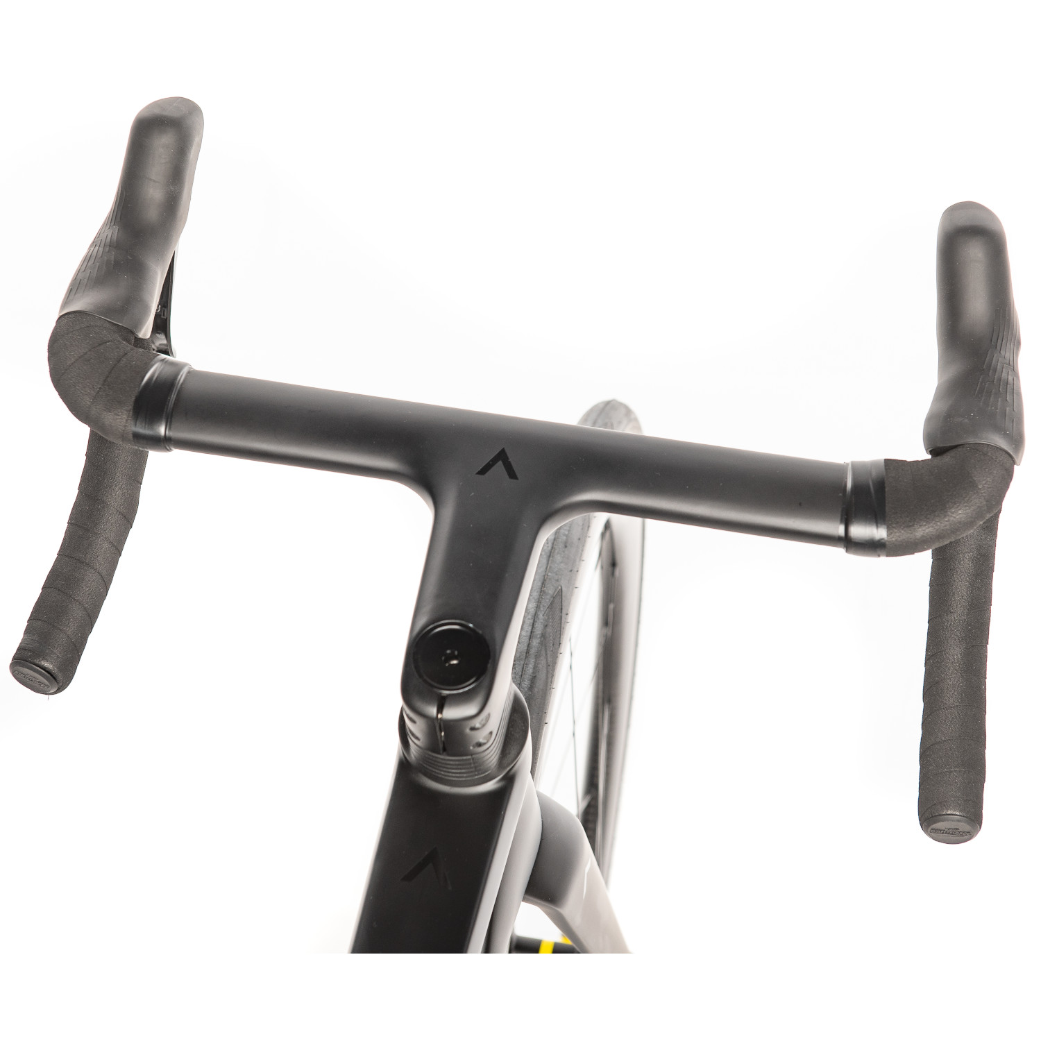 On the Atmos², you sit in an uncompromisingly sporty and compact aerodynamic position, which is supported by the low cockpit. To give you a sporty and aerodynamic position, the stem is tilted downwards by ten degrees. The cockpit is complemented by a mount for lighting/accessories on the underside of the handlebars.