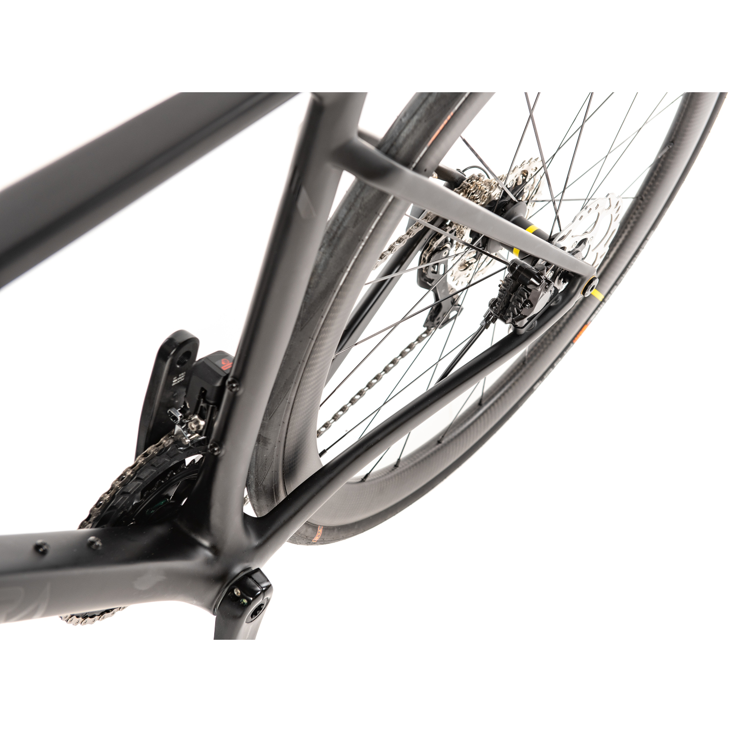 The Atmos² is much more aerodynamic than the “old” Atmos. It minimizes air resistance by using larger frame profiles. The tubes of the frame and the seat post are made entirely of T800 carbon and have an aerodynamic profile.