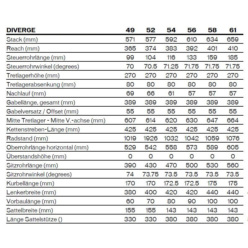 Specialized has thrown the “status quo” of gravel geometries out the window. The new Diverge has one of the most progressive geometries Specialized has ever designed for a drop bar bike. This allows it to present you with a frame with very balanced riding characteristics. Specialized has lengthened the reach, flattened the steer angle and added a longer offset fork. Together, this creates a platform that delivers confidence and riding stability on gravel and rough terrain. This paired with shorter stems ensures that the handlebars don’t move too far away and the steering remains dynamic. The depth of the bottom bracket is such that 650b wheels can be fitted, but smoothness is maintained.
